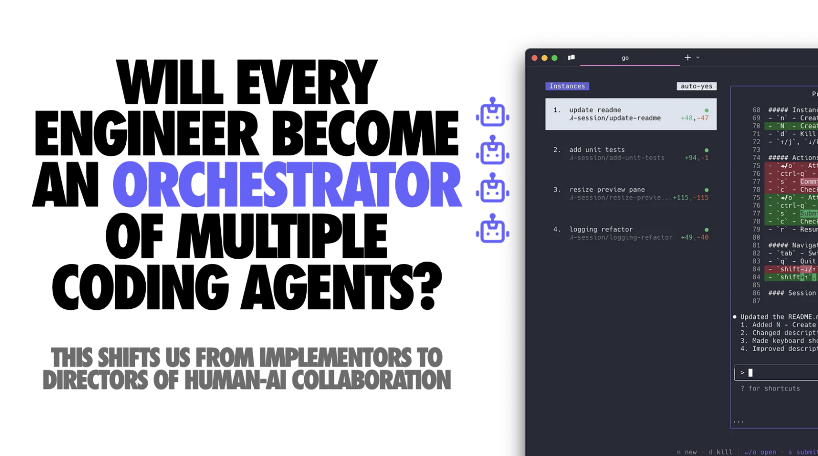 Will every engineer become an orchestrator of multiple coding agents? It’s a provocative question, but trends suggest we’re headed that way for a large class of programming tasks. The day-to-day reality of a software engineer in the late 2020s could involve less heads-down coding and more high-level supervision of code that’s mostly written by AIs.